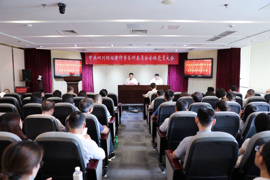 6月24日下午,中共四川明炬律师事务所委员会全体党员大会在大讲堂举行,会议由党委副书记颜波主持。