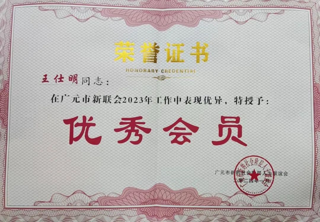 2024年1月11日下午,广元市新的社会阶层人士联谊会第二届第二次常务理事(扩大)大会在广元世纪花园酒店举行。明炬广元分所王仕明律师应邀出席会议,并获评为2023年度广元市新的社会阶层人士联谊会优秀会员。