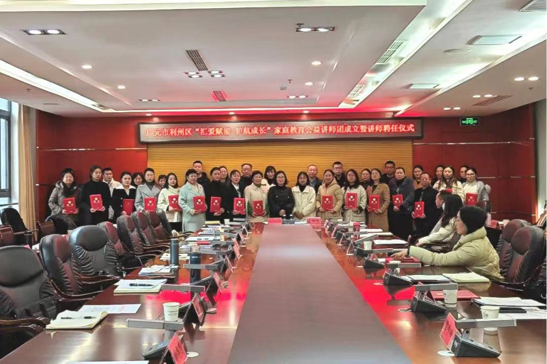 为深入学习贯彻党的二十大精神和习近平总书记关于注重家庭教育家教家风的重要论述,积极构建覆盖城乡的家庭教育指导服务体系,健全学校家庭社会协同育人机制,促进儿童健康成长,推动家庭教育新格局,广元市利州区人民法院、区检察院、区教育局、区妇联等八部门联合成立广元市利州区“汇爱赋能 护航成长”公益讲师团。2023年12月15日,讲师团成立暨讲师聘任仪式在广元市利州区政府会议室举行。