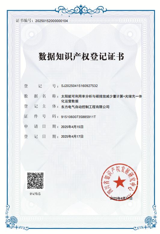 在“2030年前碳达峰、2060年前碳中和”的战略目标指引下,国家出台多项政策,积极推动经济高质量发展与绿色转型。在此背景下,四川明炬律师事务所合伙人赖晓燕为东方电气自动控制工程有限公司(下称“东方自控公司”)提供数据合规法律风险审查专项法律服务,助力其“太阳能可利用率分析与碳排放减少量计算 光储充一体化运营数据”数据知识产权成功确权登记,成为全国光储充领域首例数据知识产权登记案例。该项目聚焦企业自有工业数据的深度挖掘与应用,整合了太阳能资源分析、碳减排计算及系统智能运营等核心要素。通过构建数据分类分级管理和全生命周期的法律安全防护体系,实现了数据从“资源”到“资产”的关键跨越。
