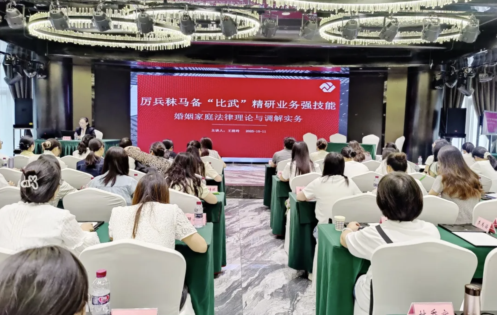 全国婚姻家庭纠纷人民调解工作“大比武”活动火热开展之际,2025年10月11日,四川省宜宾市妇联联合市司法局共同举办婚姻家庭纠纷人民调解员培训班,全市基层人民调解员、妇联干部及行业律师等180余人参加培训。四川明炬律师事务所合伙人、婚姻家庭与私人财富管理专业委员会副主任王清玲,作为四川省婚调大比武讲师团资深讲师受邀作专题授课,围绕婚调基础理论、实务技巧及典型案例展开深度分享。