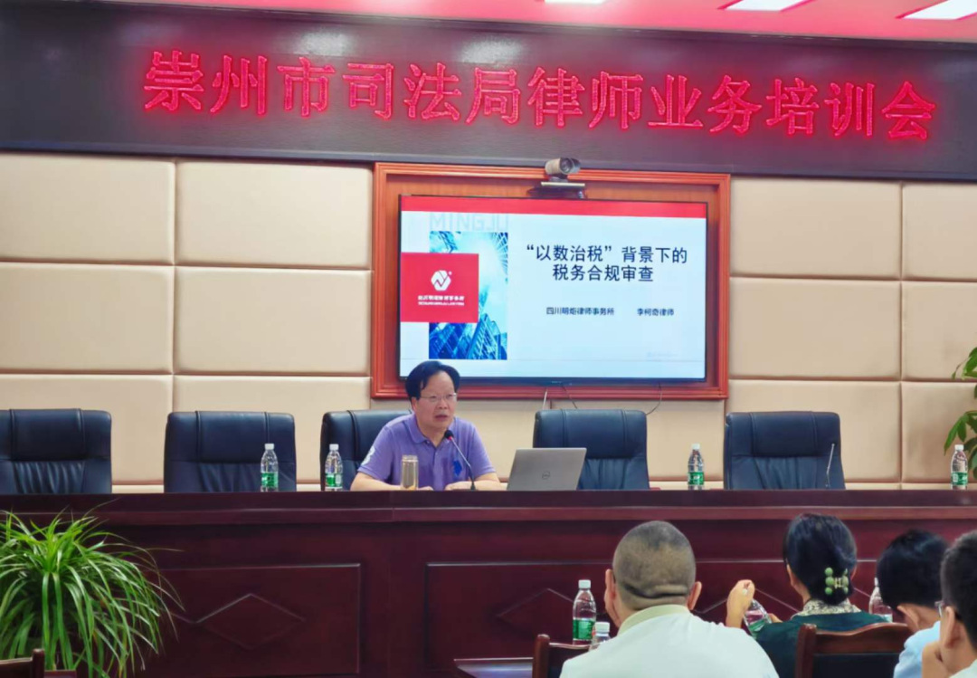 应崇州市司法局邀请,2023年9月7日上午,明炬合伙人李柯奇律师为崇州市律师同行开展“税务合规”专题讲座,全市50余名律师参加讲座。