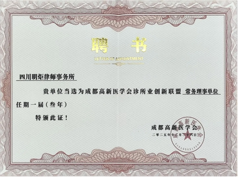 明炬当选成都高新医学会诊所业创新联盟常务理事单位