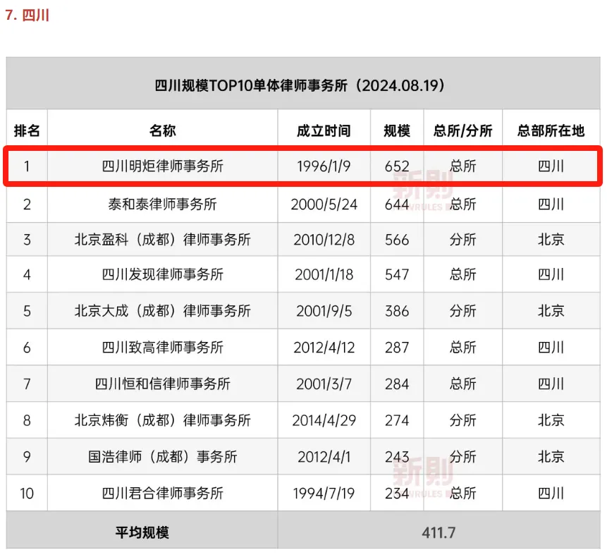 最新榜单!明炬位列“四川规模TOP10单体律所”NO.1