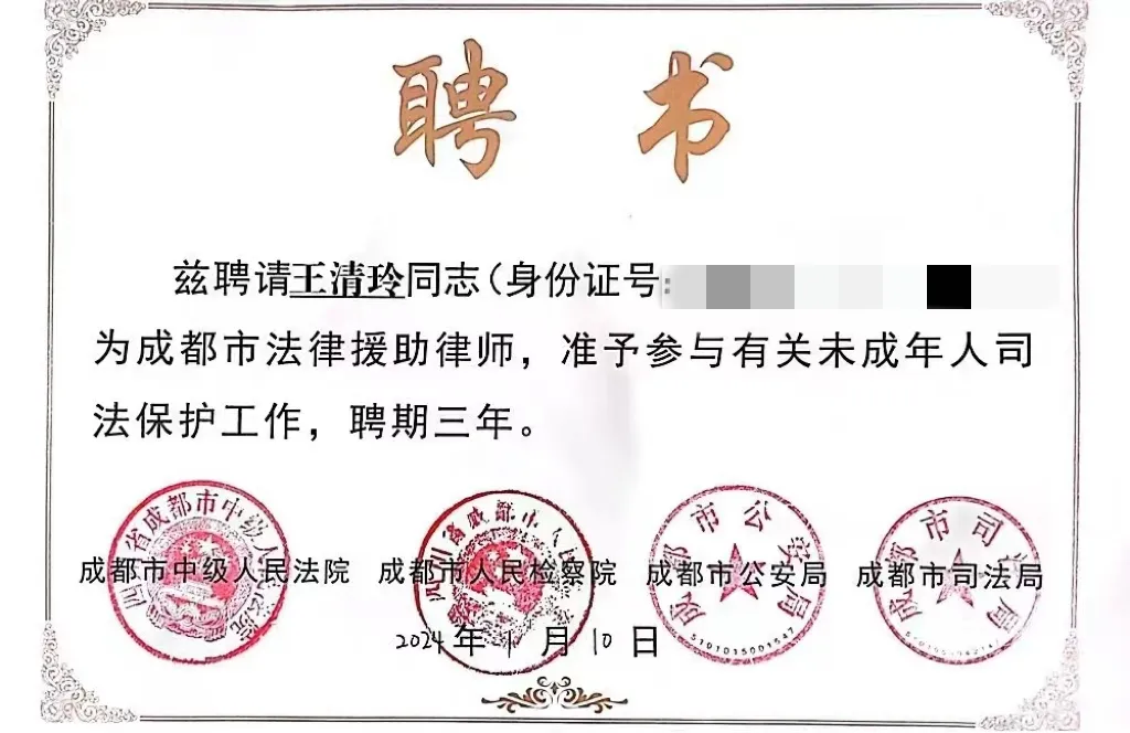王清玲、张睿、杨翠律师受聘为成都市法律援助律师