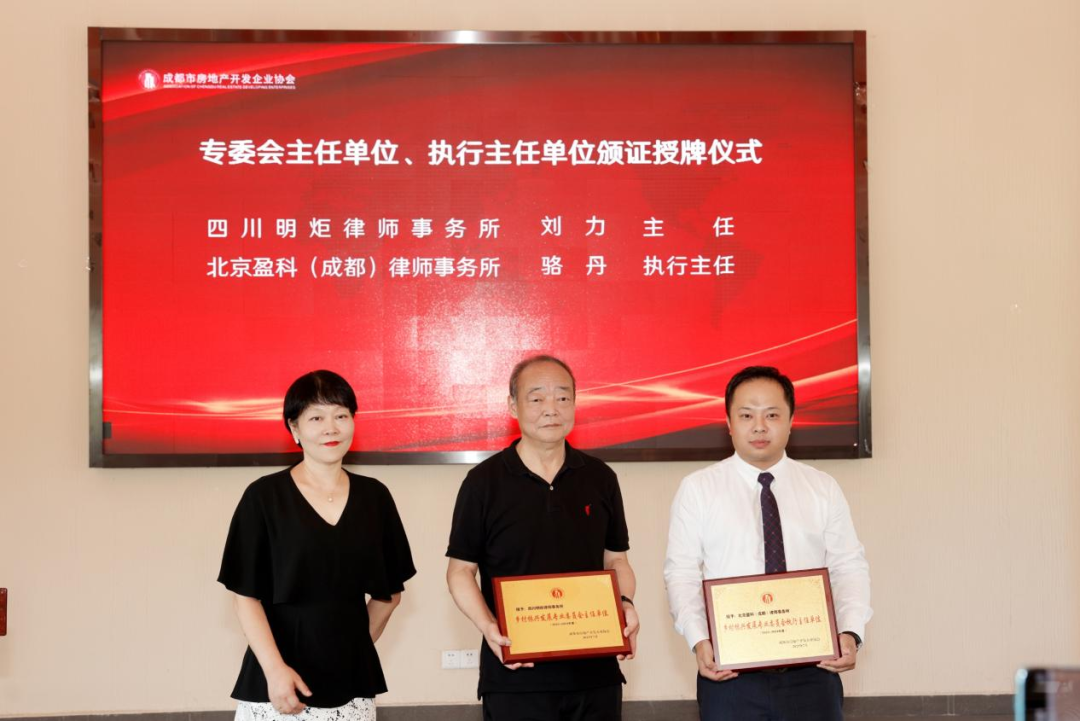 明炬受聘为成都市房地产开发企业协会乡发委主任单位,刘力律师受聘为主任,胡基洋律师受聘为副主任兼秘书长