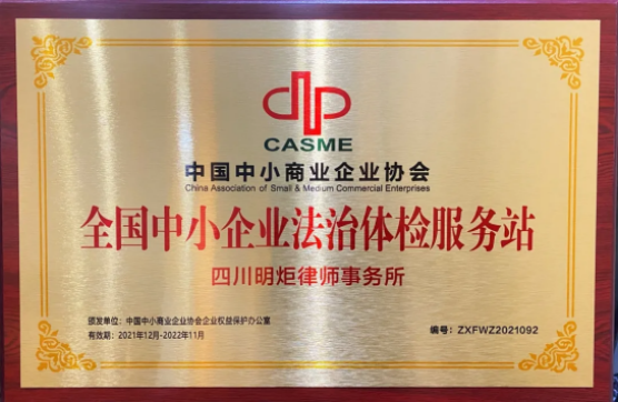 2022年1月,明炬入选“全国中小企业法治体检服务站”。