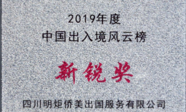 2019年11月被出入境行业风云榜组委会授予2019年度中国出入境风云榜新锐奖