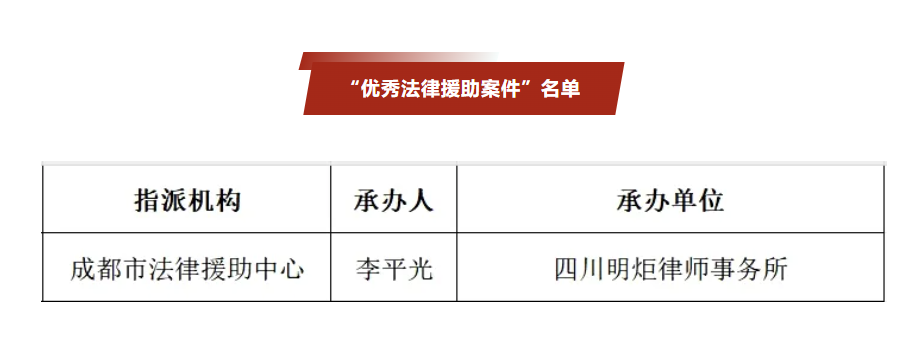 李平光律师承办法律援助案件获评成都市“优秀法律援助案件”