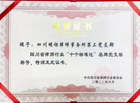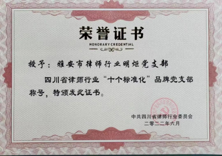 为持续深入推进律师行业党支部“十个标准化”建设,深化抓党建带队建强所建促发展理念,总结宣传推广党建工作特色做法和典型经验,积极发挥示范带动作用,用高质量党建工作成果引领律师行业持续健康发展,6月29日上午,中共四川省律师行业委员会在成都召开省律师行业党建工作经验交流会暨“十个标准化”品牌党支部表彰授牌仪式。